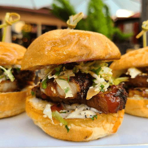 Pork belly topped with our sour slaw, garlic aioli & BBQ sauce. Served on a brioche bun