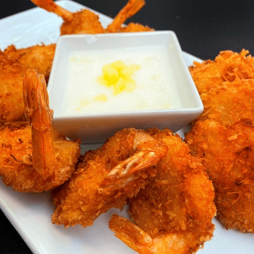 Jumbo shrimp hand breaded in coconut flakes and deep fried. Served with our pineapple coconut sauce