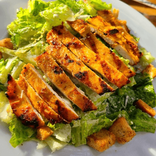 Fresh romaine tossed in our house Caesar dressing, parmesan cheese, croutons & grilled chicken breast