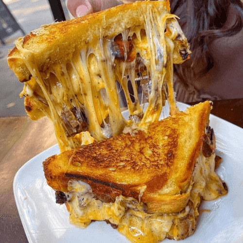 Jack & cheddar cheese, BBQ sauce, oven roasted tomato on sourdough toast. Choice of chicken, pulled pork or brisket